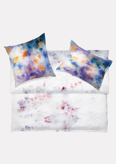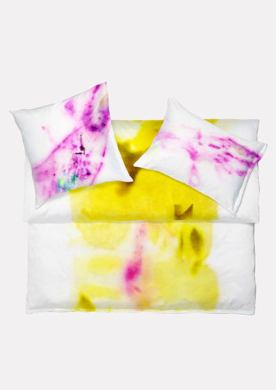 Für das Projekt Flora Alpina entwickelte Atelier de Myri eine Bettwäschekollektion, die auf der Farbstoff- und Formenwelt der Schweizer Alpenflora basiert. Über ein Jahr lang wurden Gräser und Blüten verschiedener Höhenlagen auf ihre natürlichen Pigmente untersucht – durch Eco Print-Verfahren und Pflanzenfärbung entstanden zarte Abdrücke und Farbspuren, die das verborgene Innenleben der alpinen Vegetation sichtbar machen. Unscheinbare Arten wie Frauenmantel, Drahtschmiele oder Sauerampfer offenbarten dabei überraschende Farbnuancen in sanften Gelb-, Grün- und vereinzelt Rottönen.